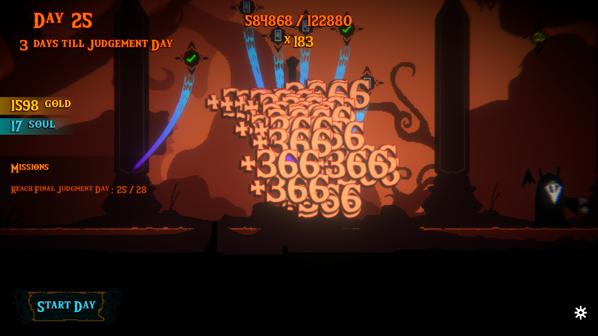 farming souls by fountain and overtime + monolit and free labor and overtime ---) used bell to tranform it into money ---) use sword with free labor on it. Warning don't put overtime on sword if over 500 coins or you will be there for hours and hours